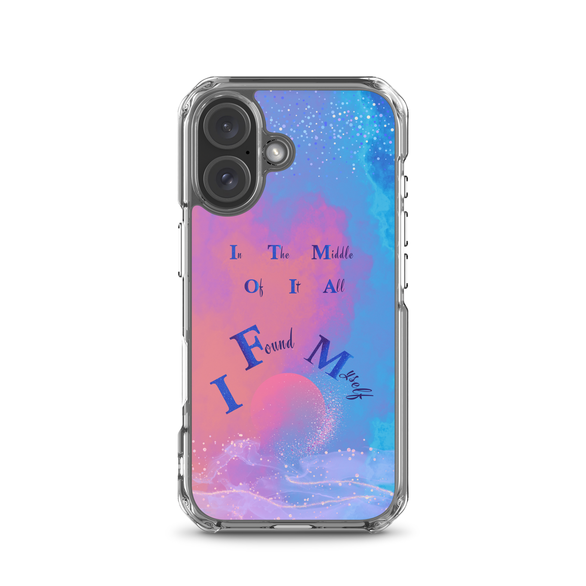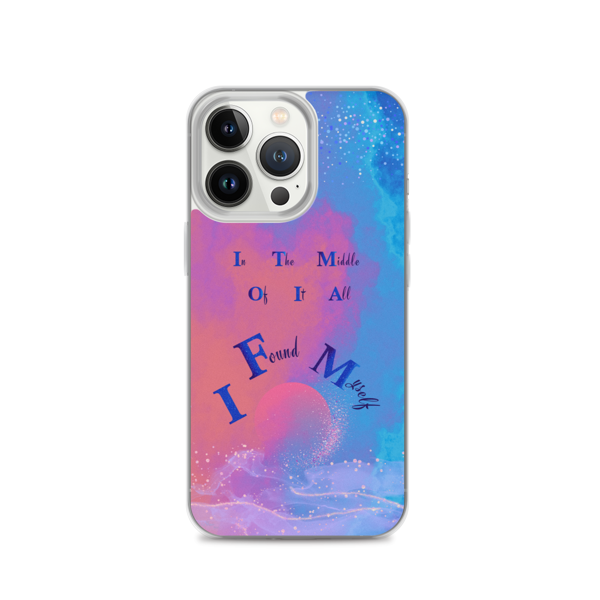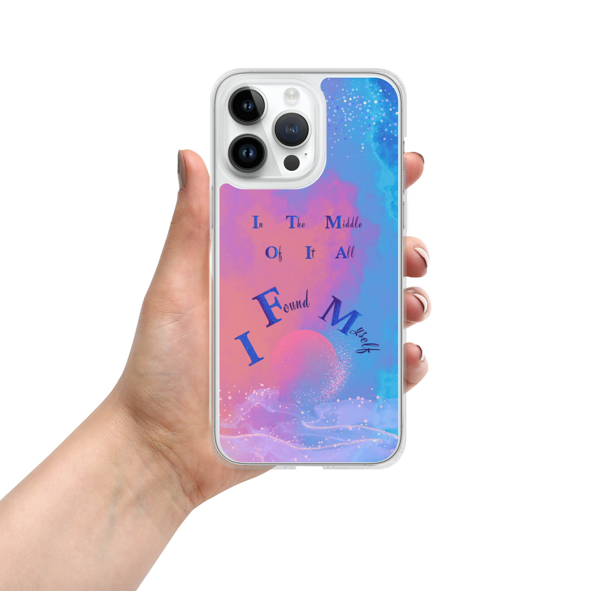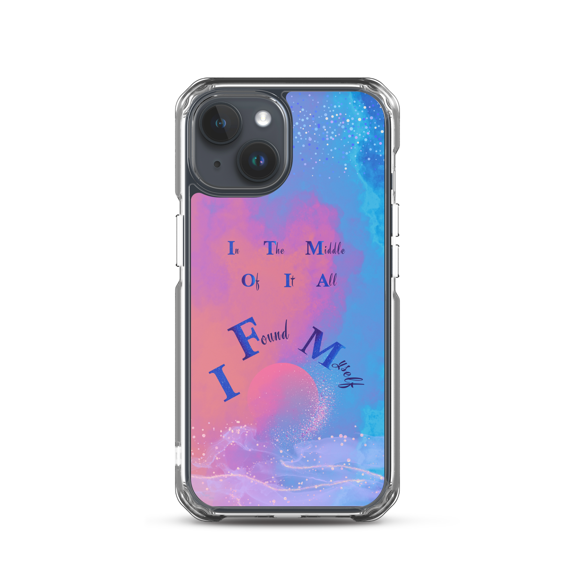 Experience the uplifting message through one of our clear iPhone Case carries, "In The Middle Of It All, I Found Myself".