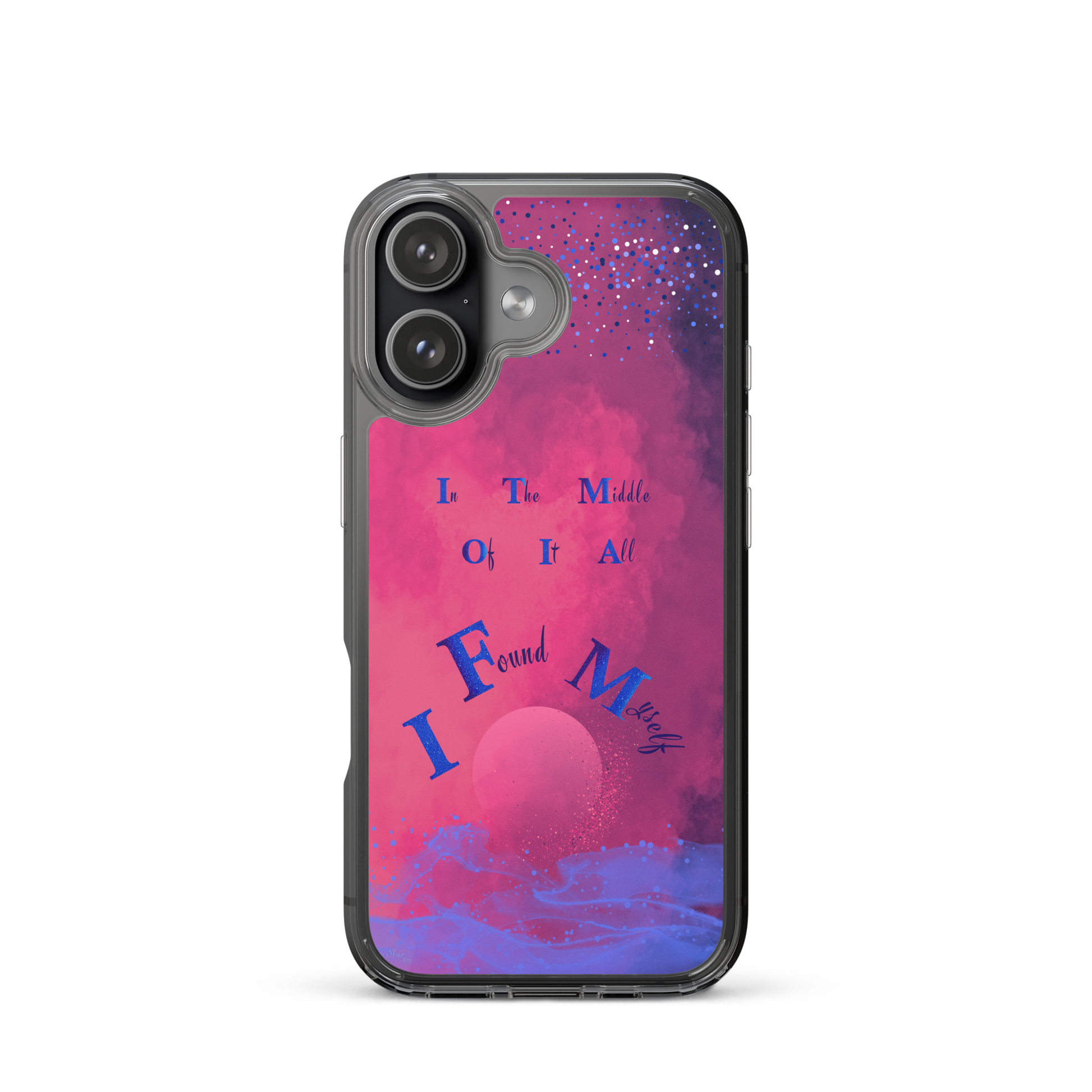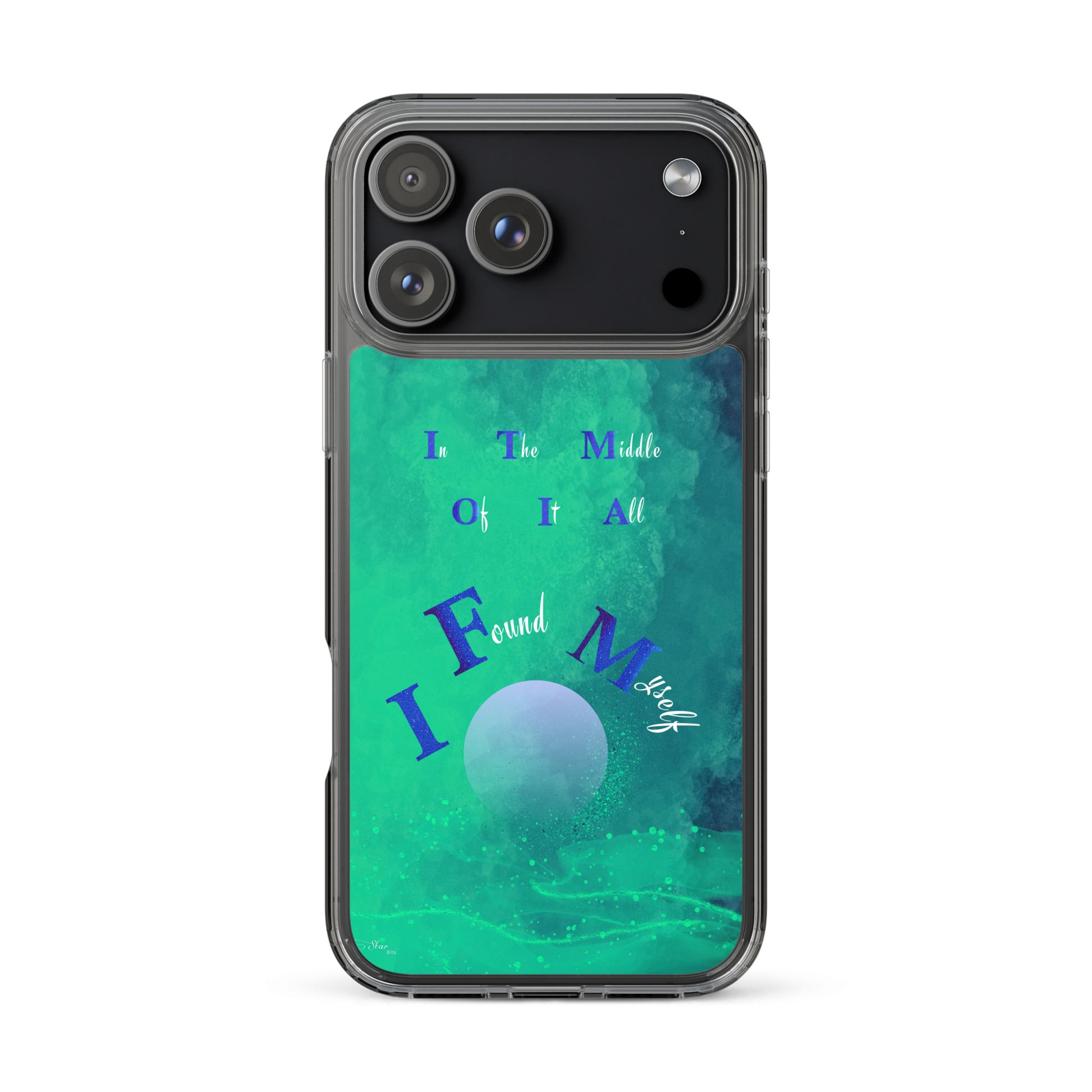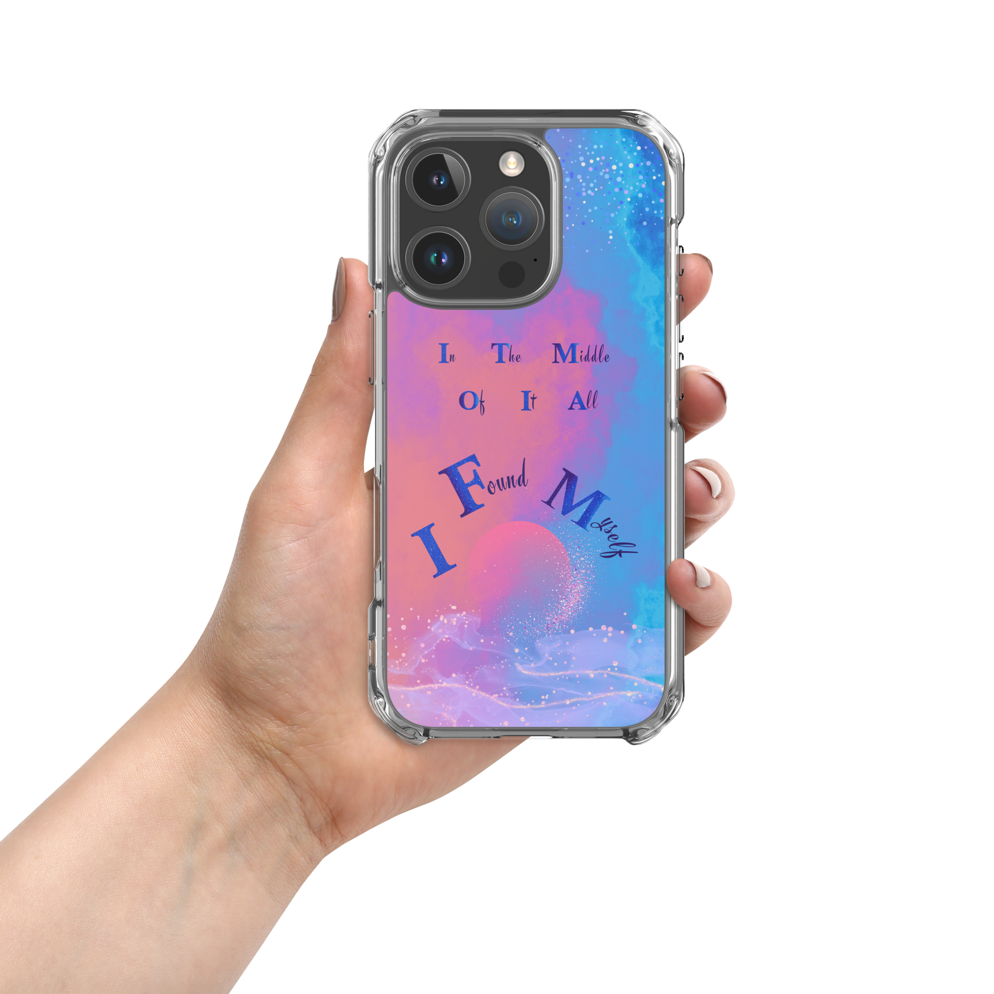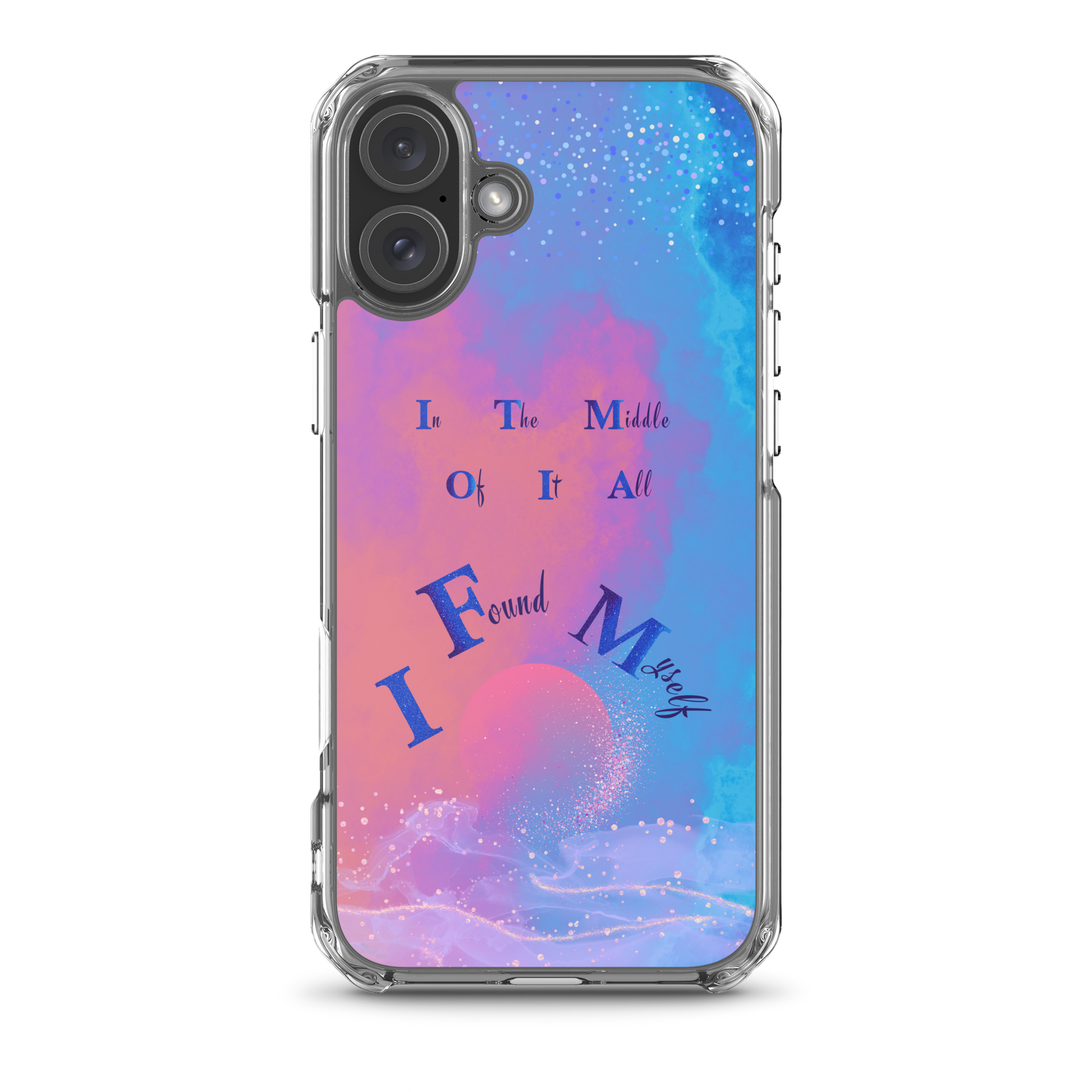 Experience the uplifting message through one of our clear iPhone Case carries, "In The Middle Of It All, I Found Myself".