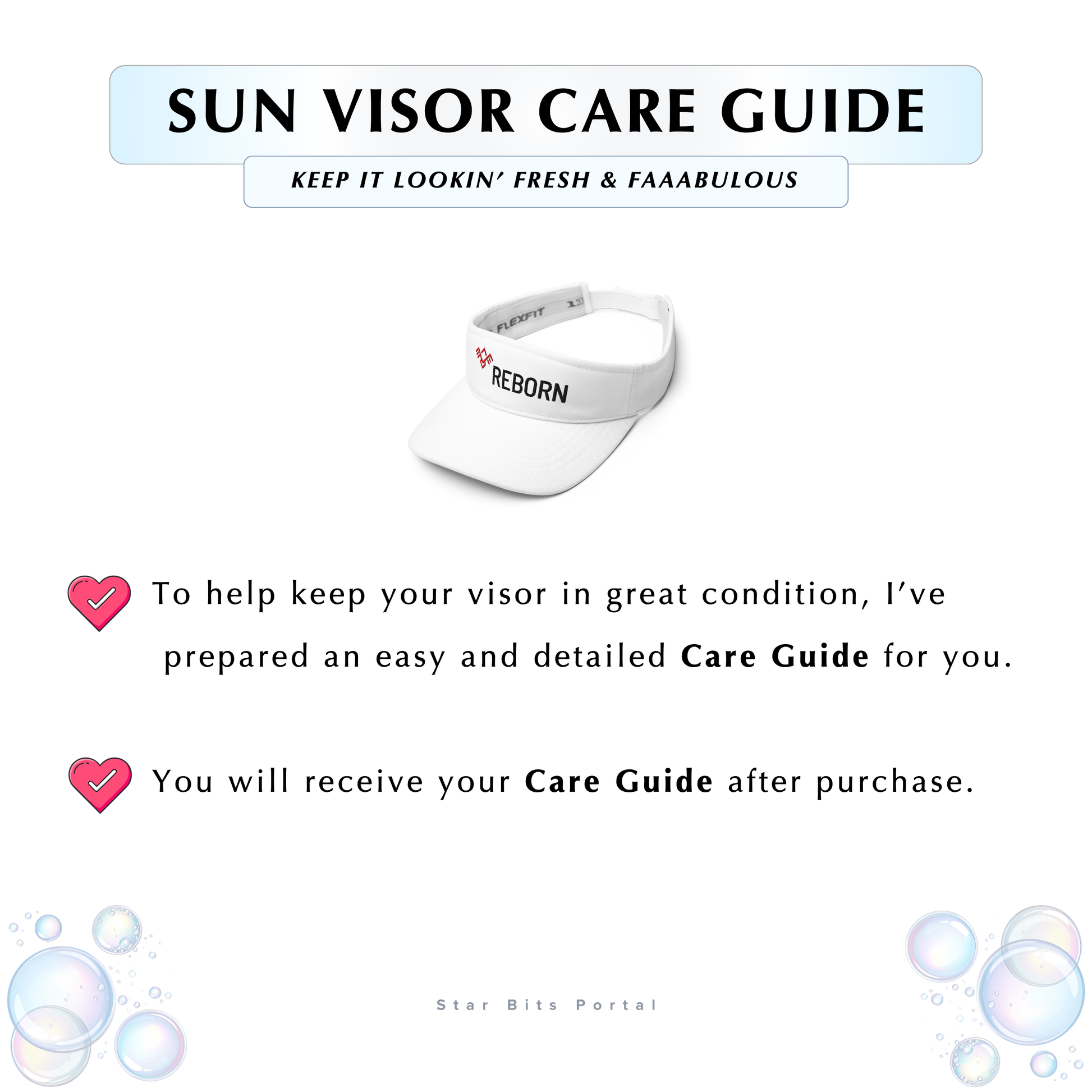 To help keep your visor in great condition, I’ve prepared an easy and detailed 'CARE GUIDE' for you. You will receive your Care Guide after purchase.